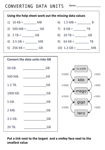 Computer Science Data units and binary conversion worksheets Bytes, KB ...