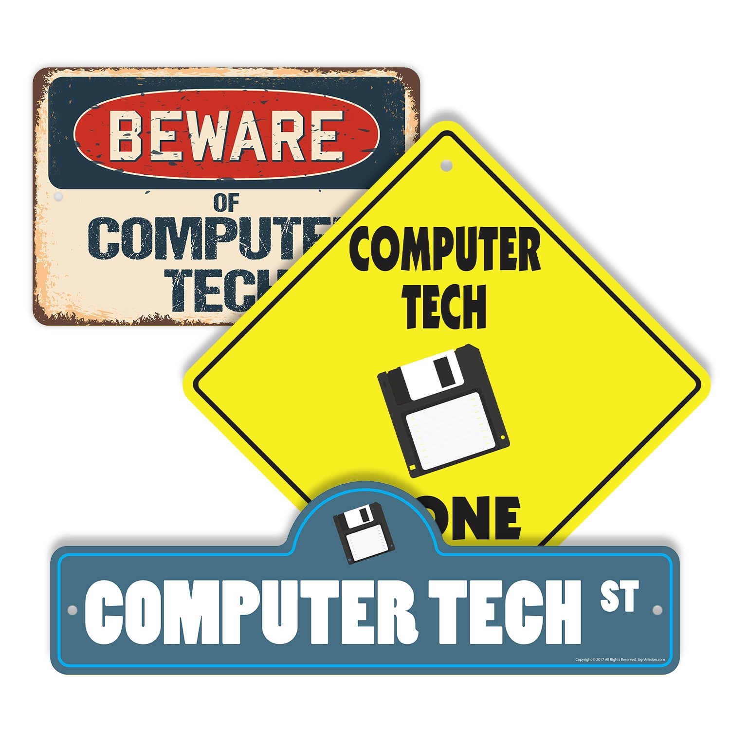 Computer Tech (3 Pack) Large Plastic Street Sign Crossing Sign Warning ...