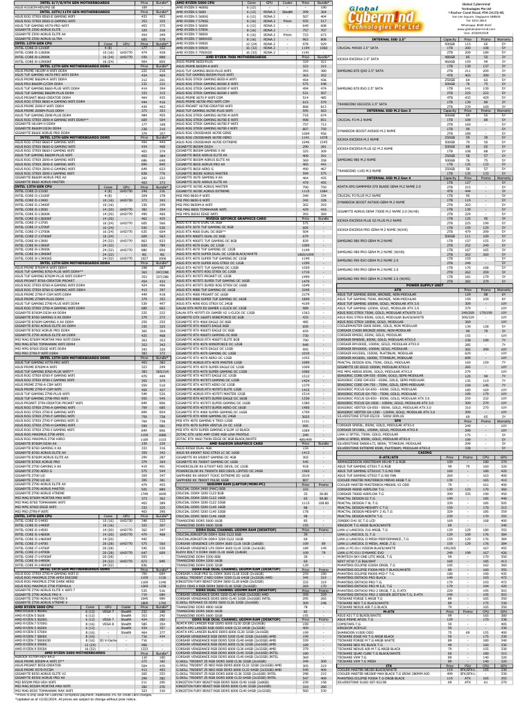 PC Hardware Pricing Guide | PDF | Computer Hardware | Office Equipment