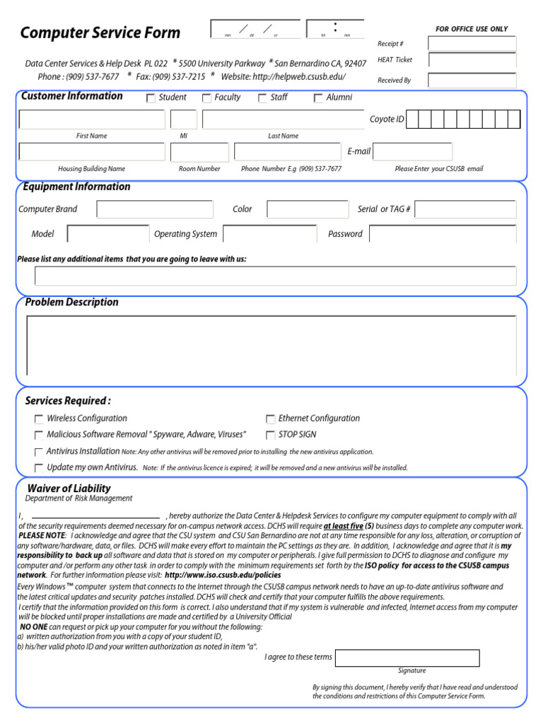 Computer Service Form Template | PDF | Antivirus Software | Computer Virus