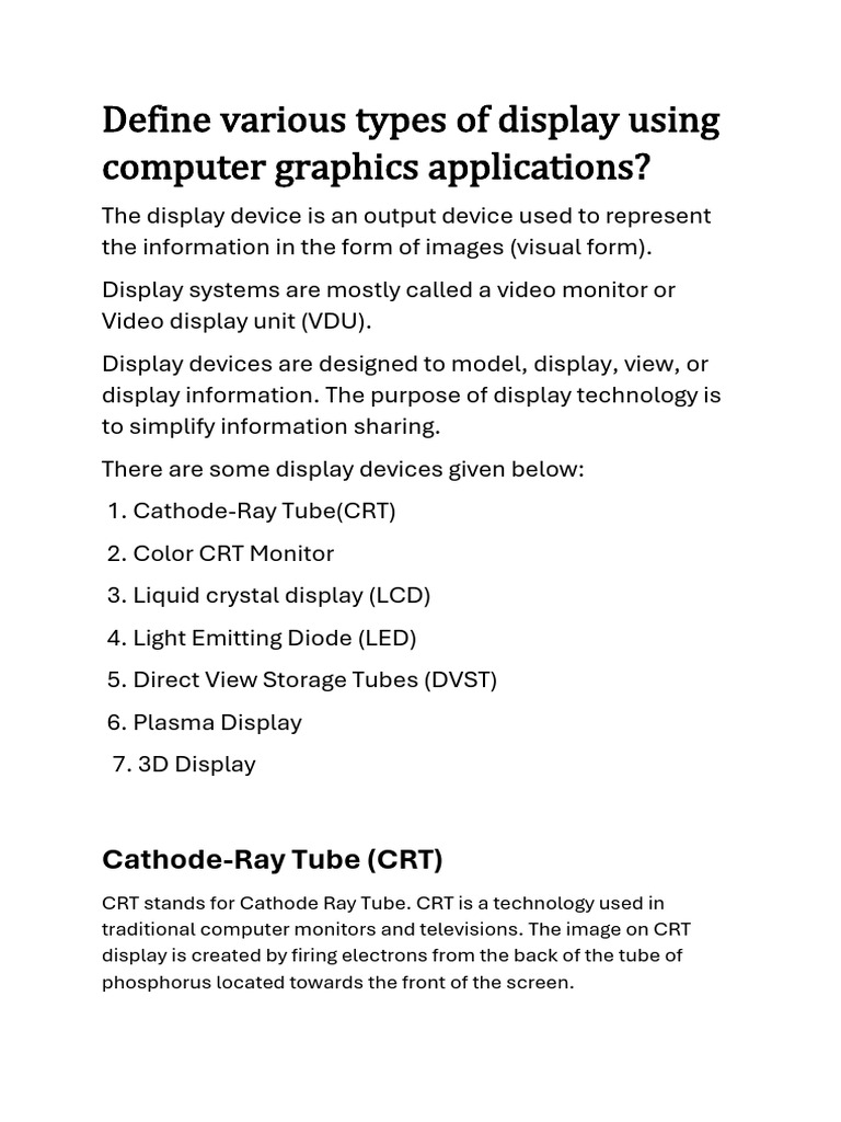 Define Various Types of Display Using Computer Graphics Applications ...