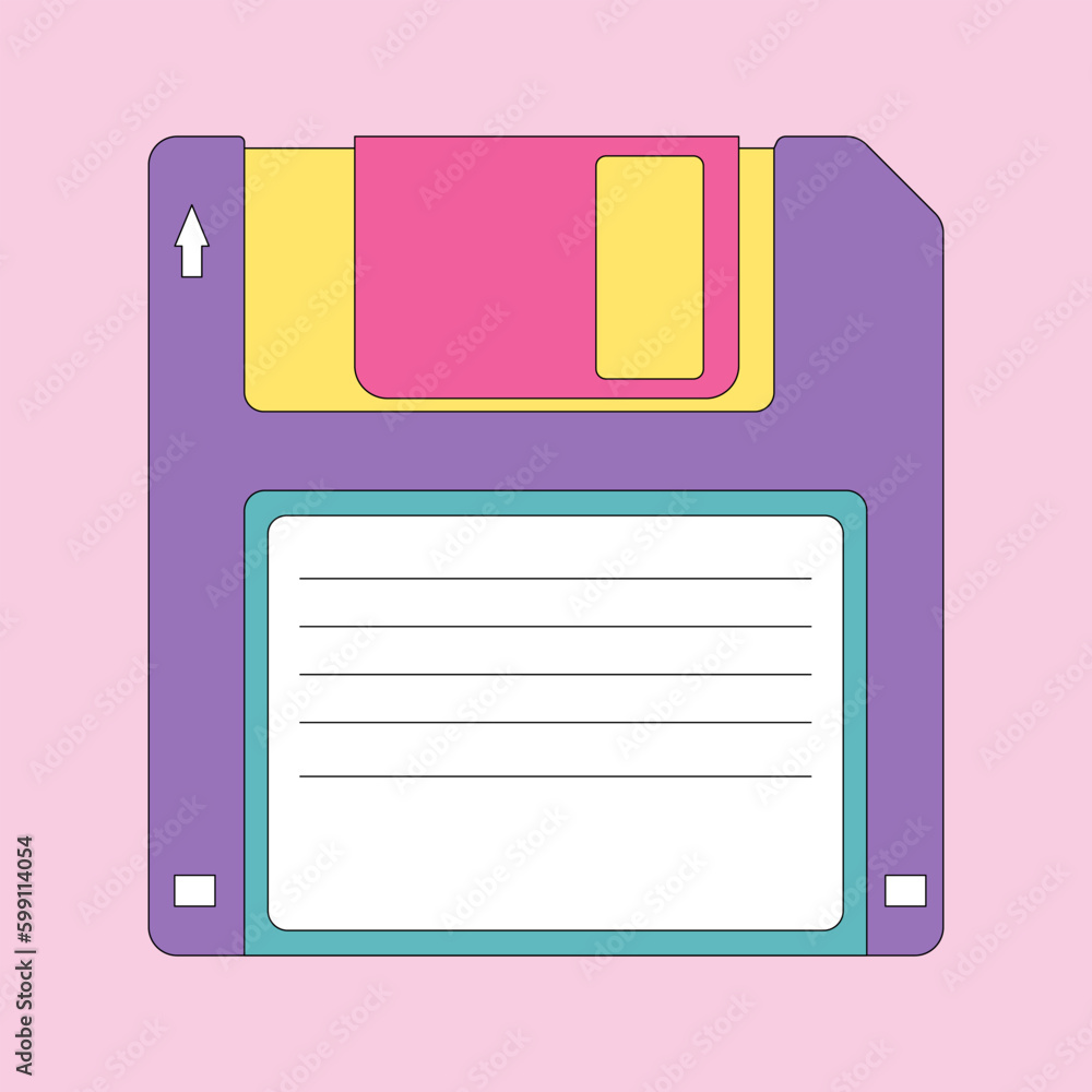 Cute doodle floppy disk for information storage from 90s and 00s. Retro ...