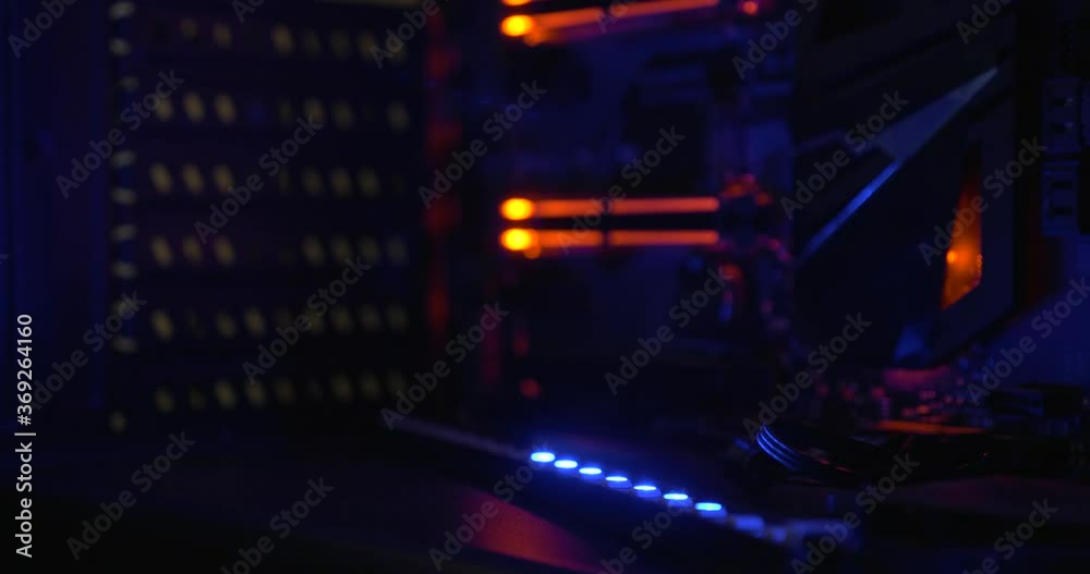 Gaming PC with RGB LED lights on a computer, assembled with hardware ...