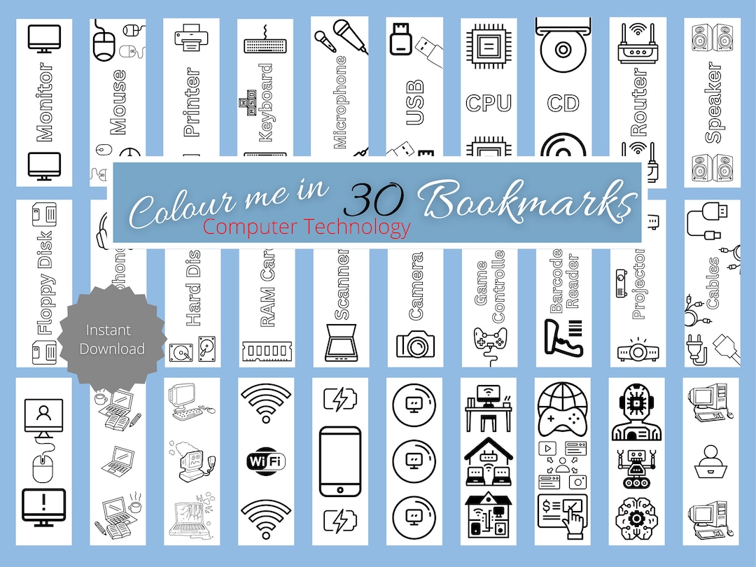 Color Your Own Computer Science Bookmarks – Printable Set of 30 - Etsy