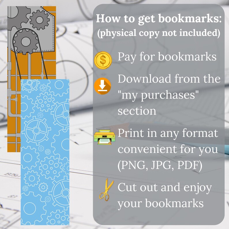 Steampunk Bookmark Gear Design Mechanical Art Printable Bookmark ...