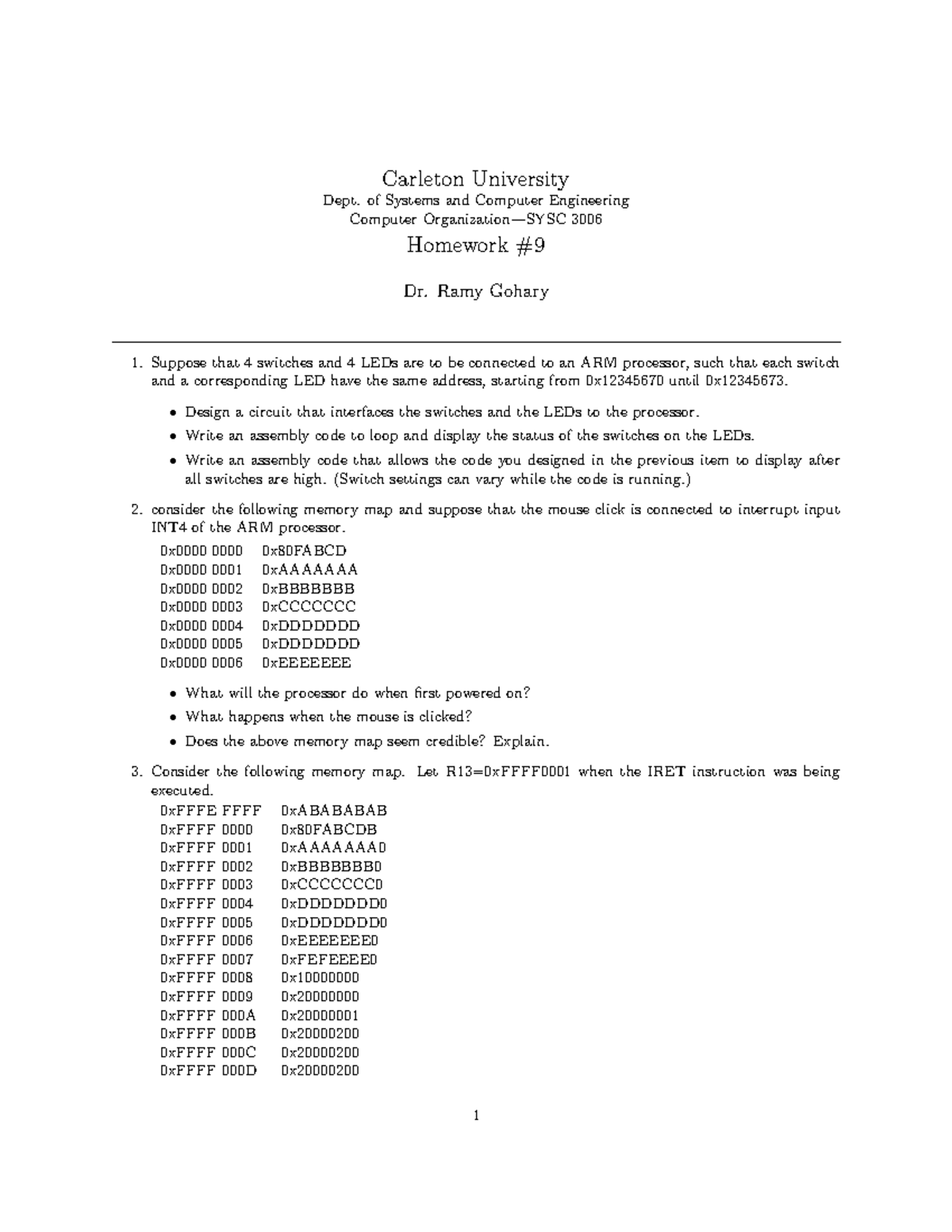 Computer 3006 Homework 9: ARM Processor Interface Design and Code - Studocu