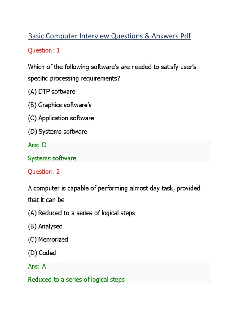 Computer Job Interview Question & Answers! | 10 Basic Computer ...