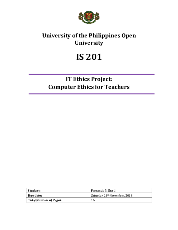 (PDF) IS 201 IT Ethics Project: Computer Ethics for Teachers Student