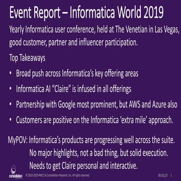 Event Report - Informatica InformaticaWorld 2019 - Progress across the ...