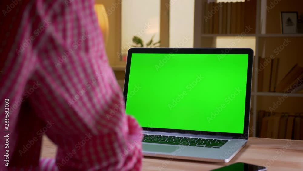 Premium Photo | Back view of business woman looking at green screen ...