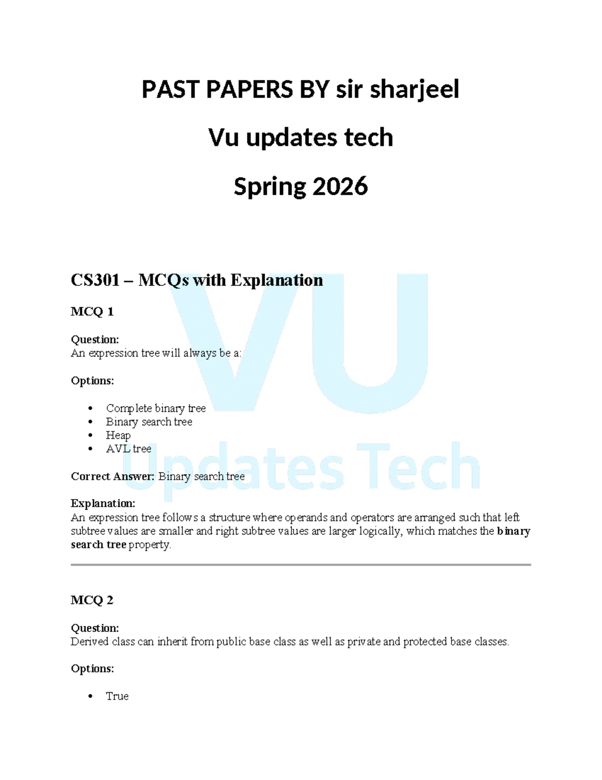CS301 Final Exam Preparation: Past Papers & MCQs with Explanations ...