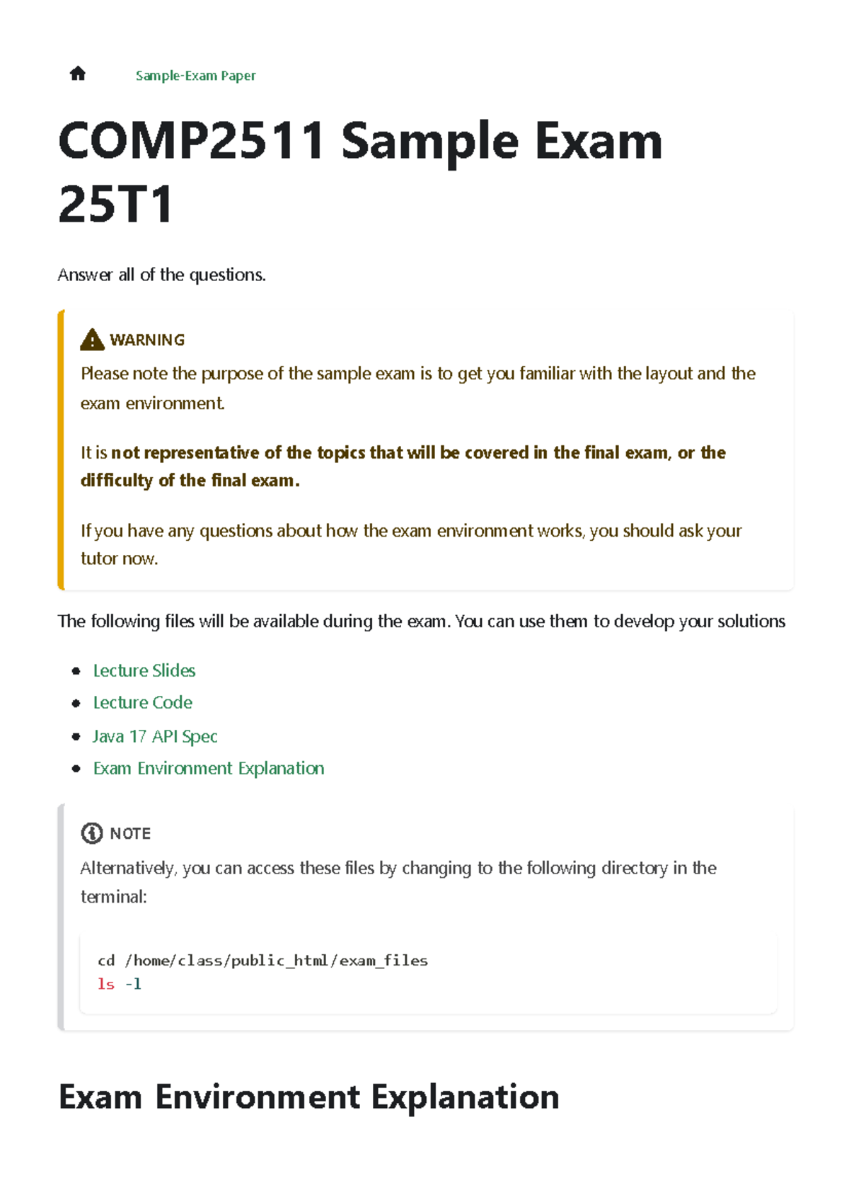 Sample Exam Paper COMP2511 25T1: Final Exam Overview and Questions ...