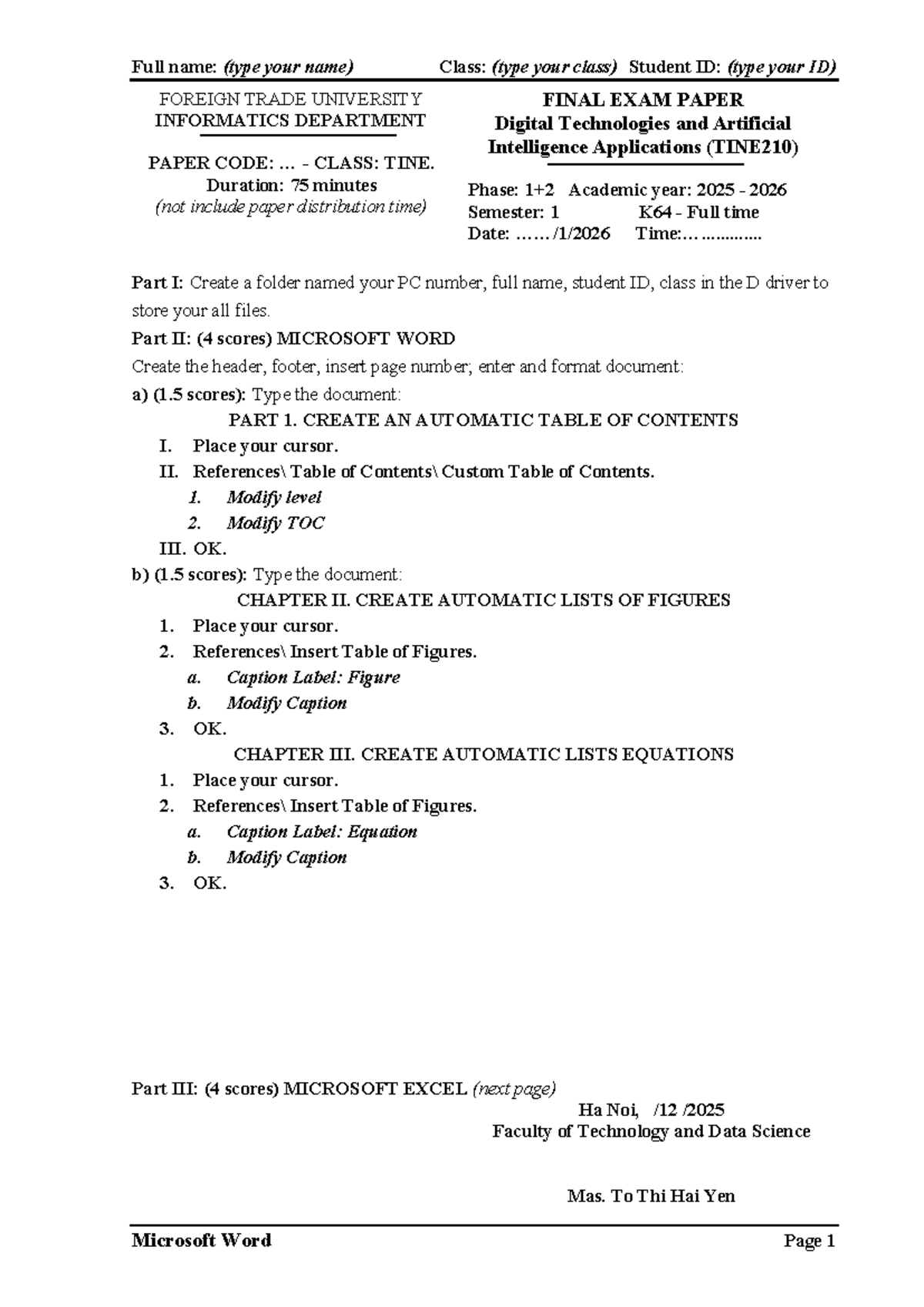 Final Exam Paper: Word Practice Test (TINE210) - Studocu