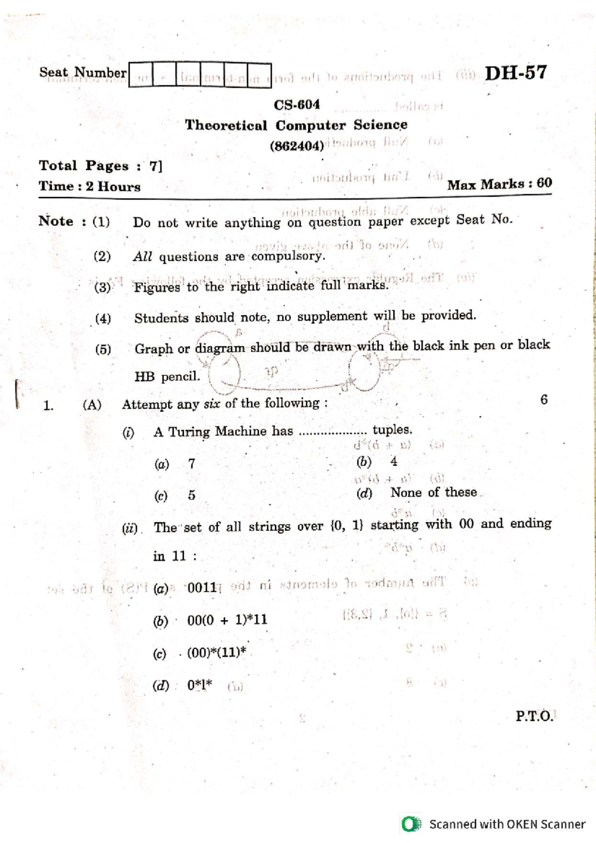 Theoretical Computer Science (862404) Final Exam Paper - March 2023 ...