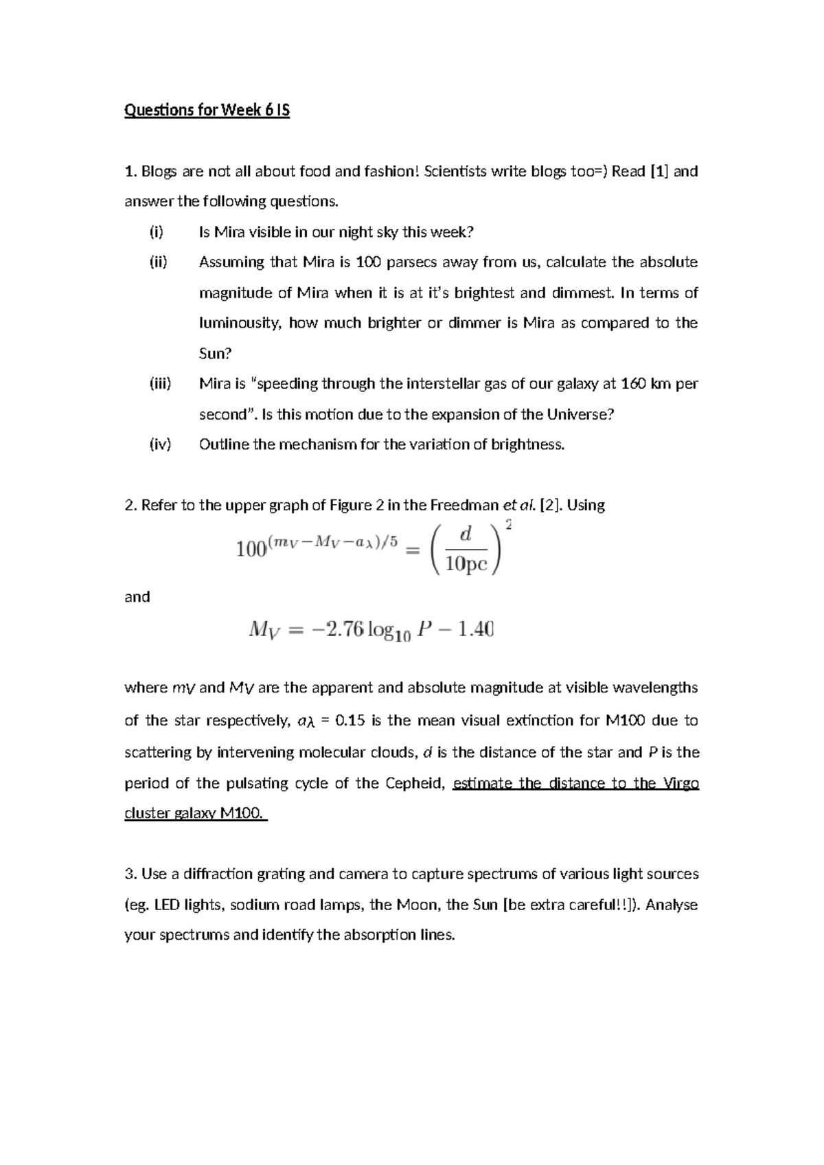 Questions for Week 6 IS - Final Paper on Stellar Analysis - Studocu