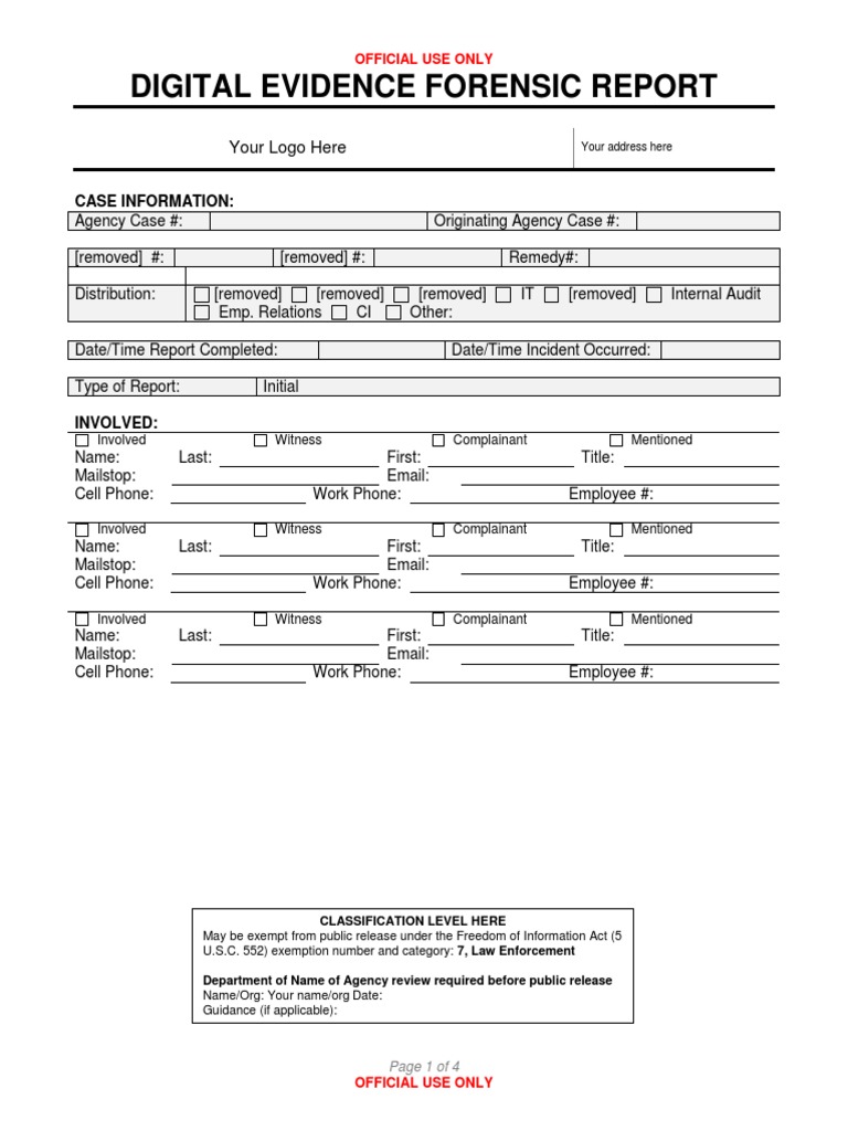 Digital Evidence Forensic Report Template for Investigations | Course Hero