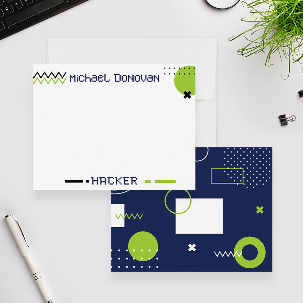 Personalized Hacker Note Card, Mens Fun Stationery, Computer Geek Gift