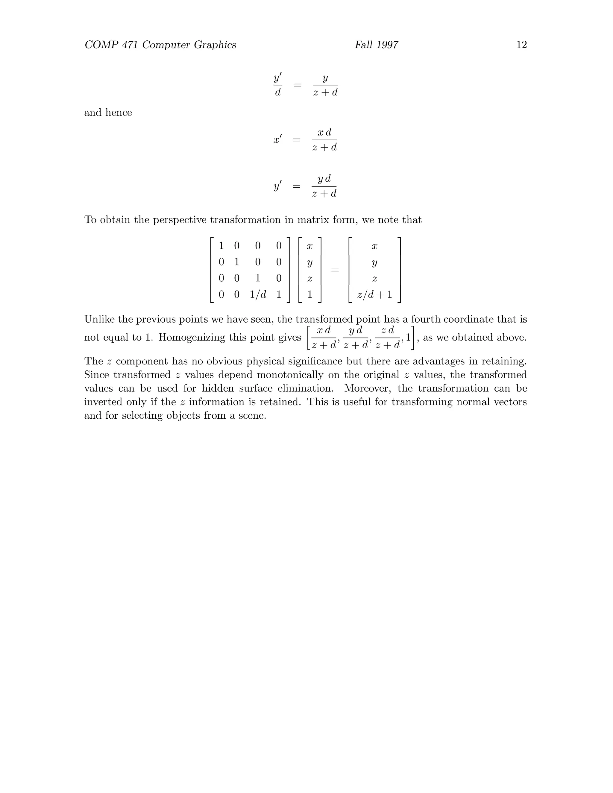 Computer graphics 3d transformation | Study notes Computer science ...