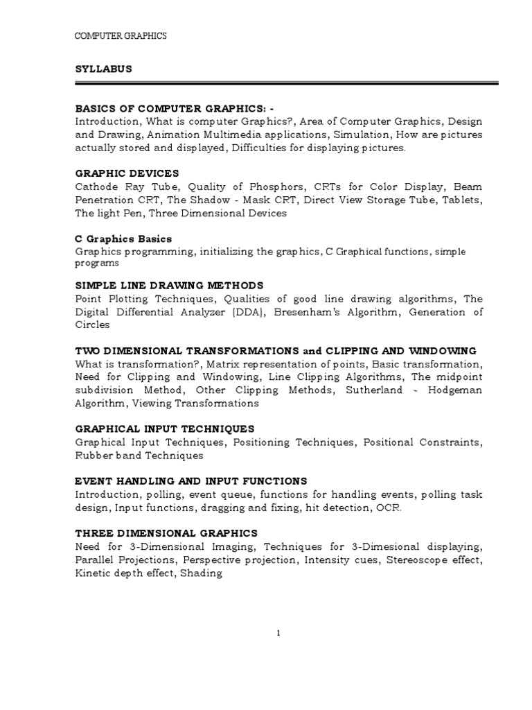 Computer graphics syllabus | DOC