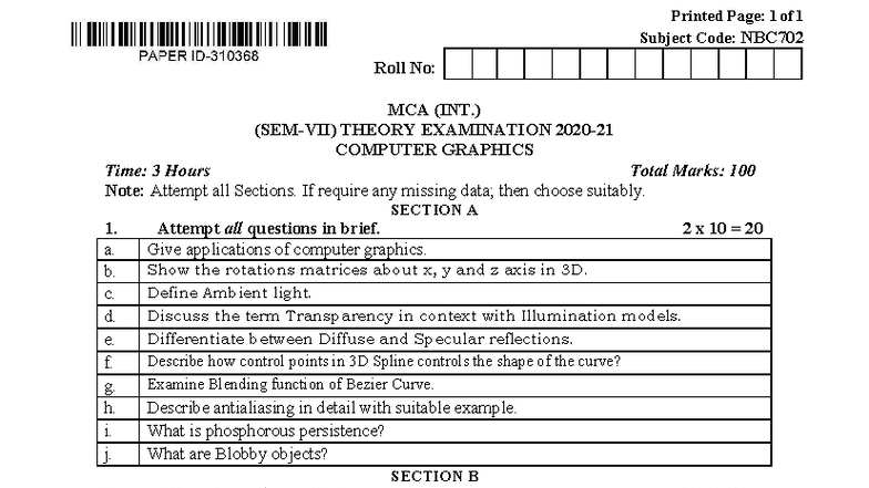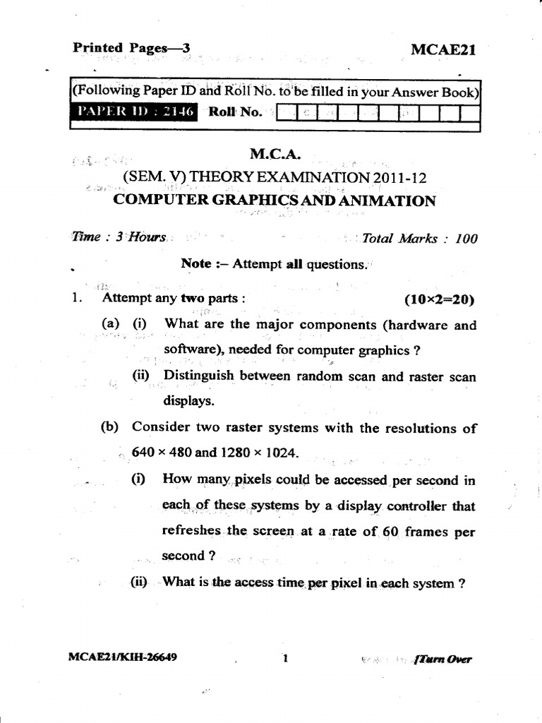 MCA 1st Sem Computer Graphics & Multimedia Dec 2022 Exam Paper - Studocu