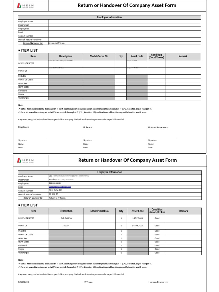 Template Form Return or Handover IT Asset - V2 | PDF