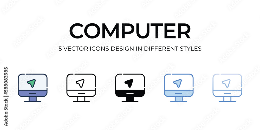 Computer Icon Design in Five style with Editable Stroke. Line, Solid ...