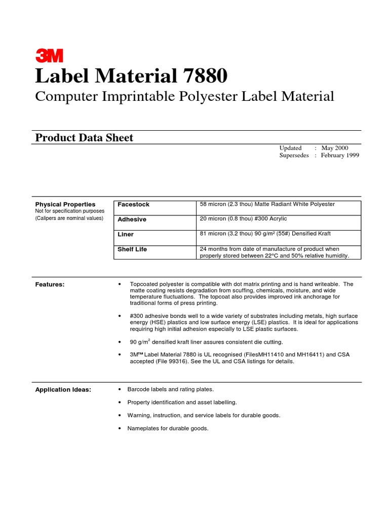 3M™ Computer Imprintable Polyester Label Material 7880 - Technocrats ...