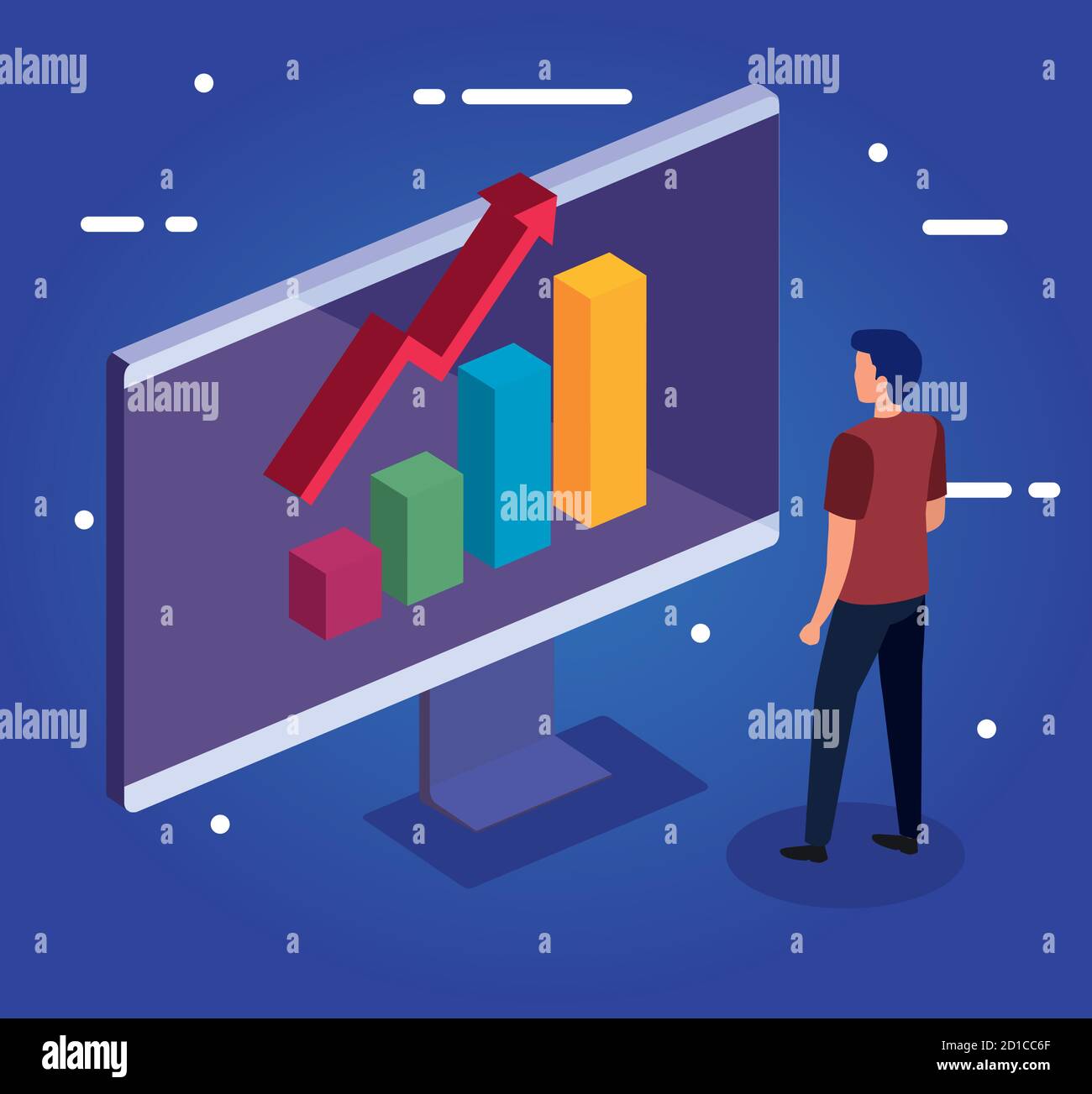 bars chart with increase arrow on computer 3d vector design Stock ...