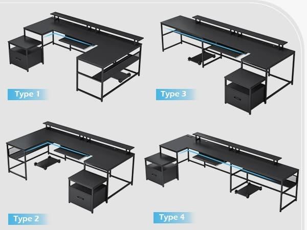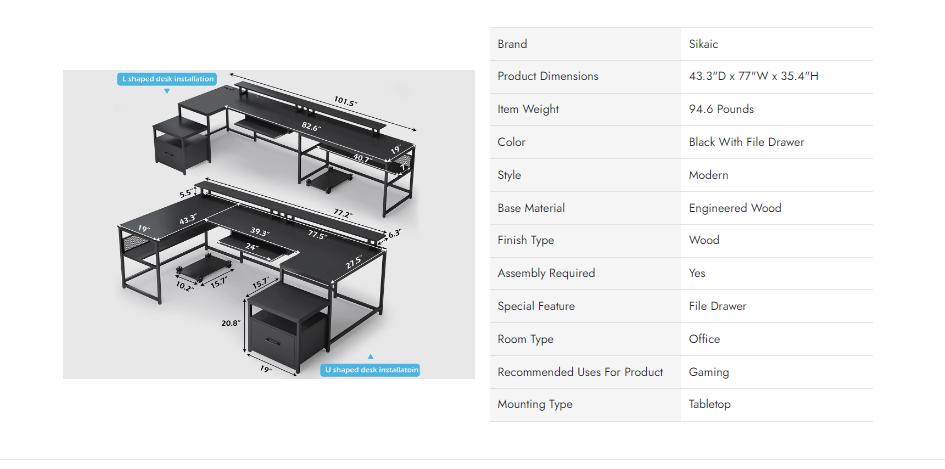 SIKAIC 101.5 in U-Shaped Reversible L-Shaped Office Computer Desk with ...