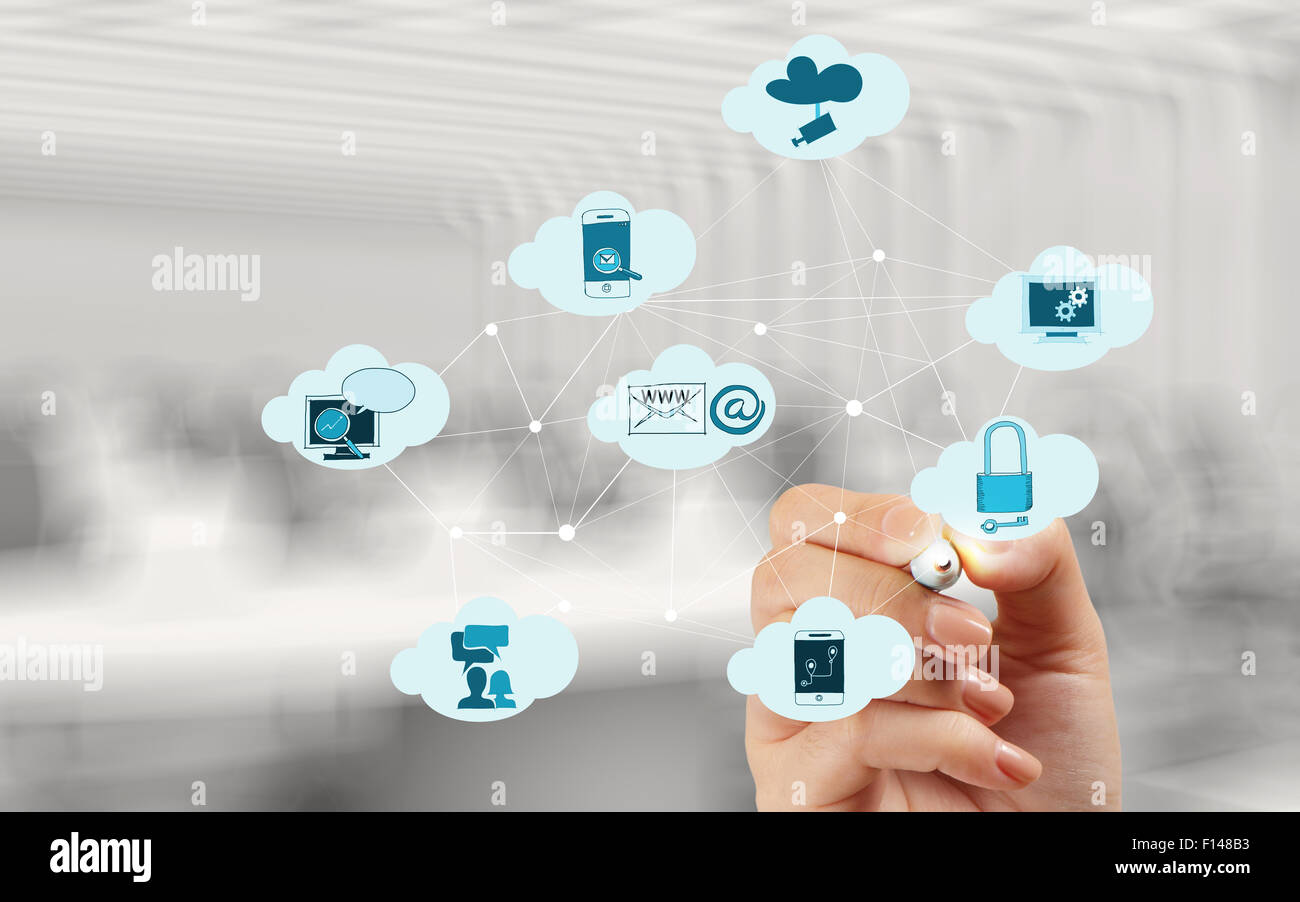 hand drawing a Cloud Computing diagram on the new computer interface ...