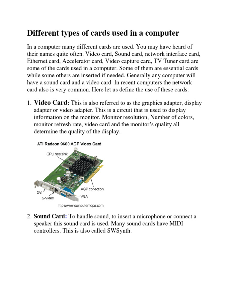 Functions and Type of Computer Cards | PDF | Graphics Processing Unit ...