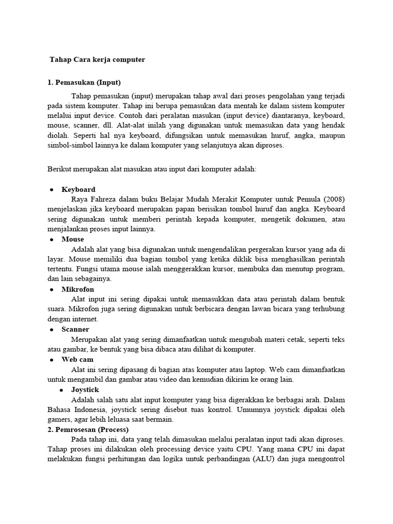 Tahap Cara Kerja Computer | PDF