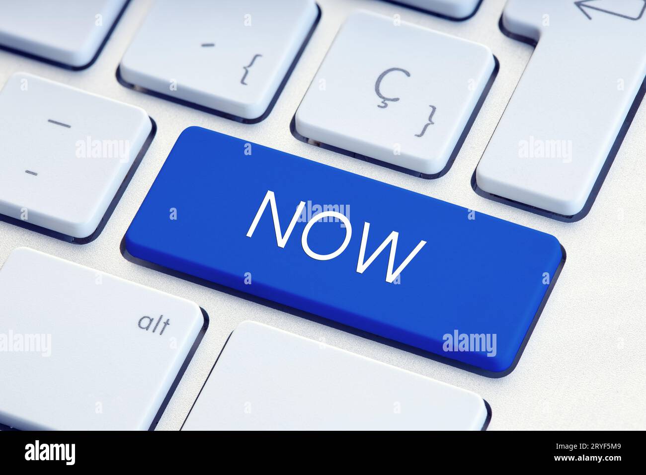 Computer keyboard key with the word Book now text Stock Photo - Alamy
