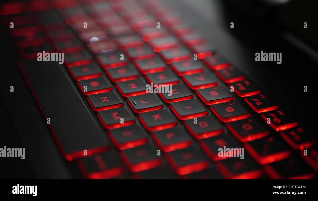 Red lighted keyboard of a notebook Stock Photo - Alamy