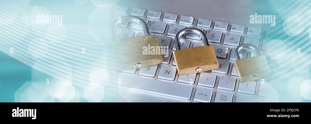 Padlocks on computer keyboard. panoramic banner Stock Photo - Alamy