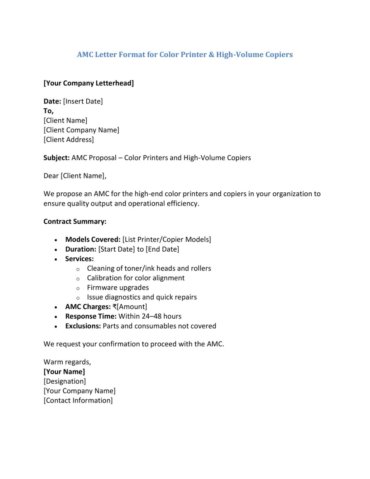 AMC Letter Format for Office Equipment (5 Templates) Download in Word ...