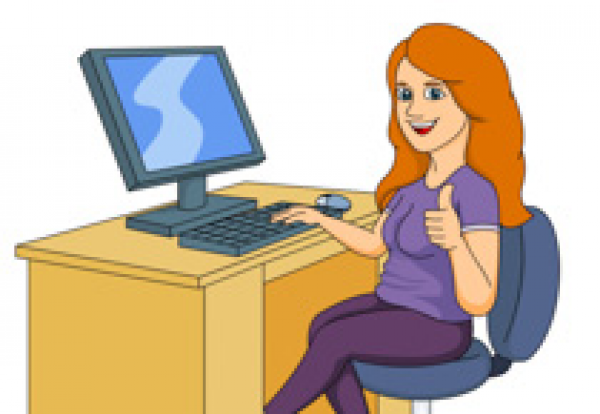 Clipart Lady At Computer