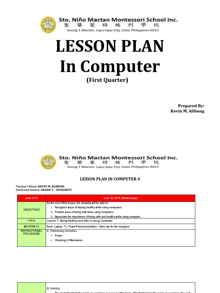 Computer Lesson Plan | PDF