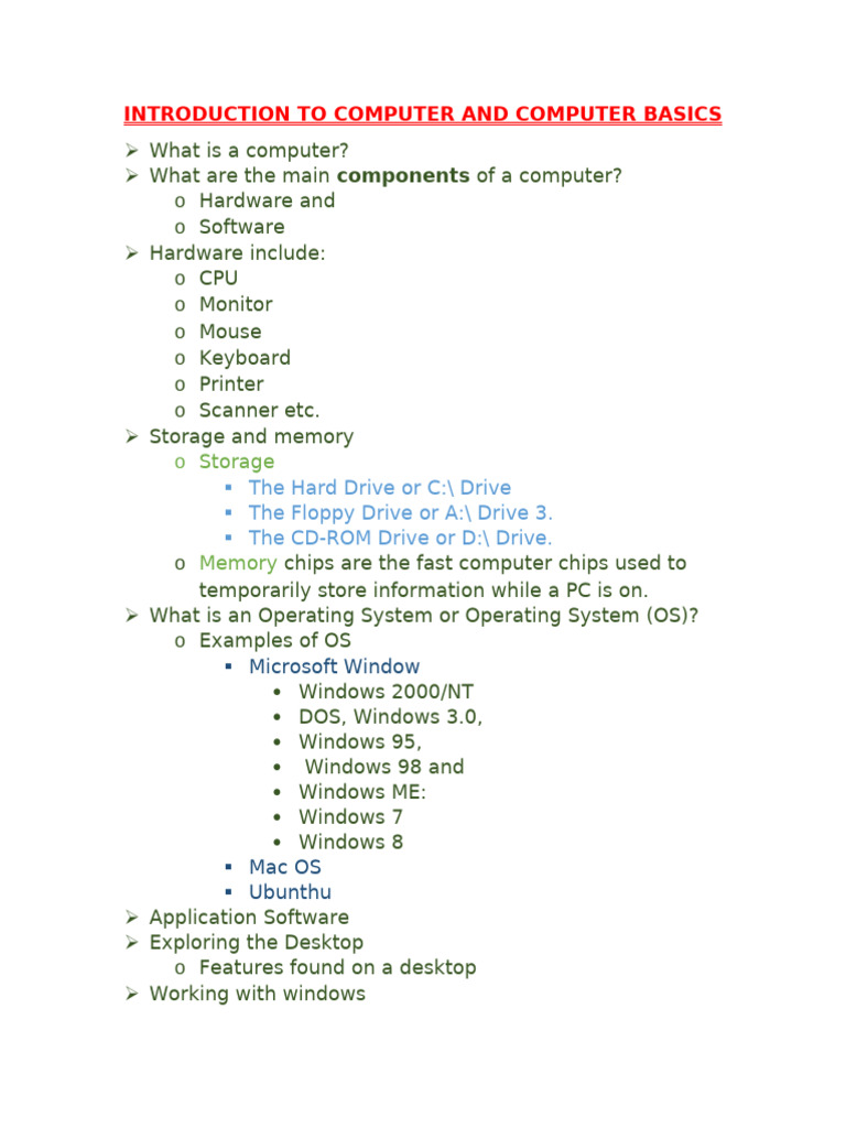 Computer Basics Lesson Plan One | PDF | Personal Computers | Computer ...