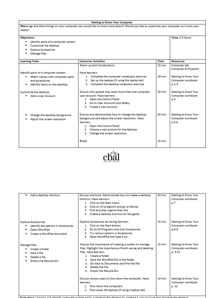 Computer Fundamentals - Lesson Plan | PDF