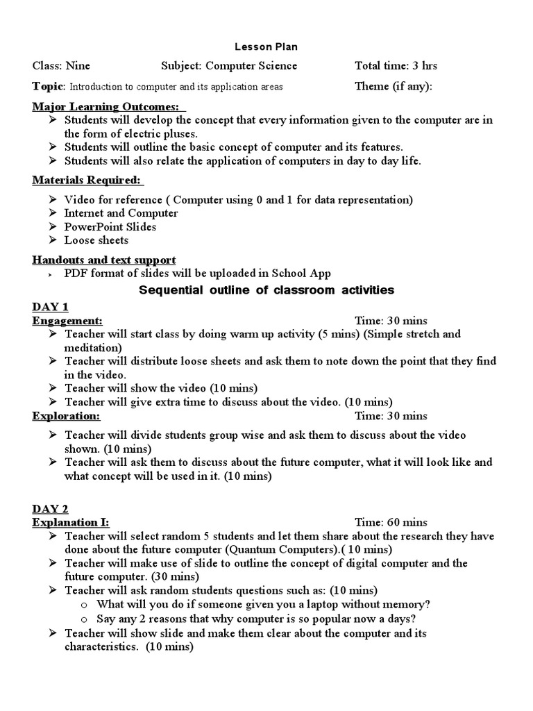 Lesson Plan (Introduction To Computer and Its Applications) | PDF ...
