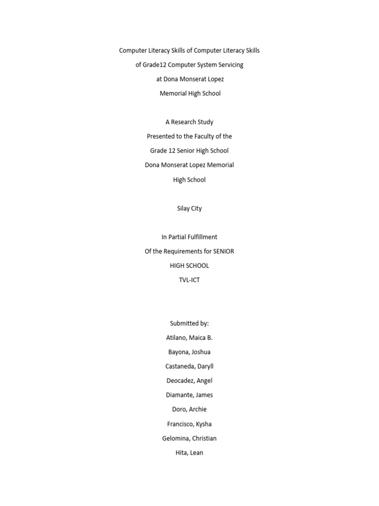 Computer Literacy Assessment Among The Senior High School of ST | PDF ...