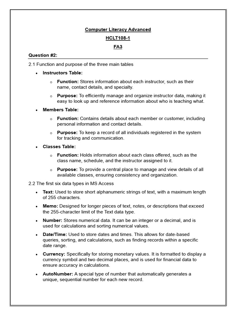 HCLT108-1 FA3 - Advanced Computer Literacy Employee & Customer Data ...