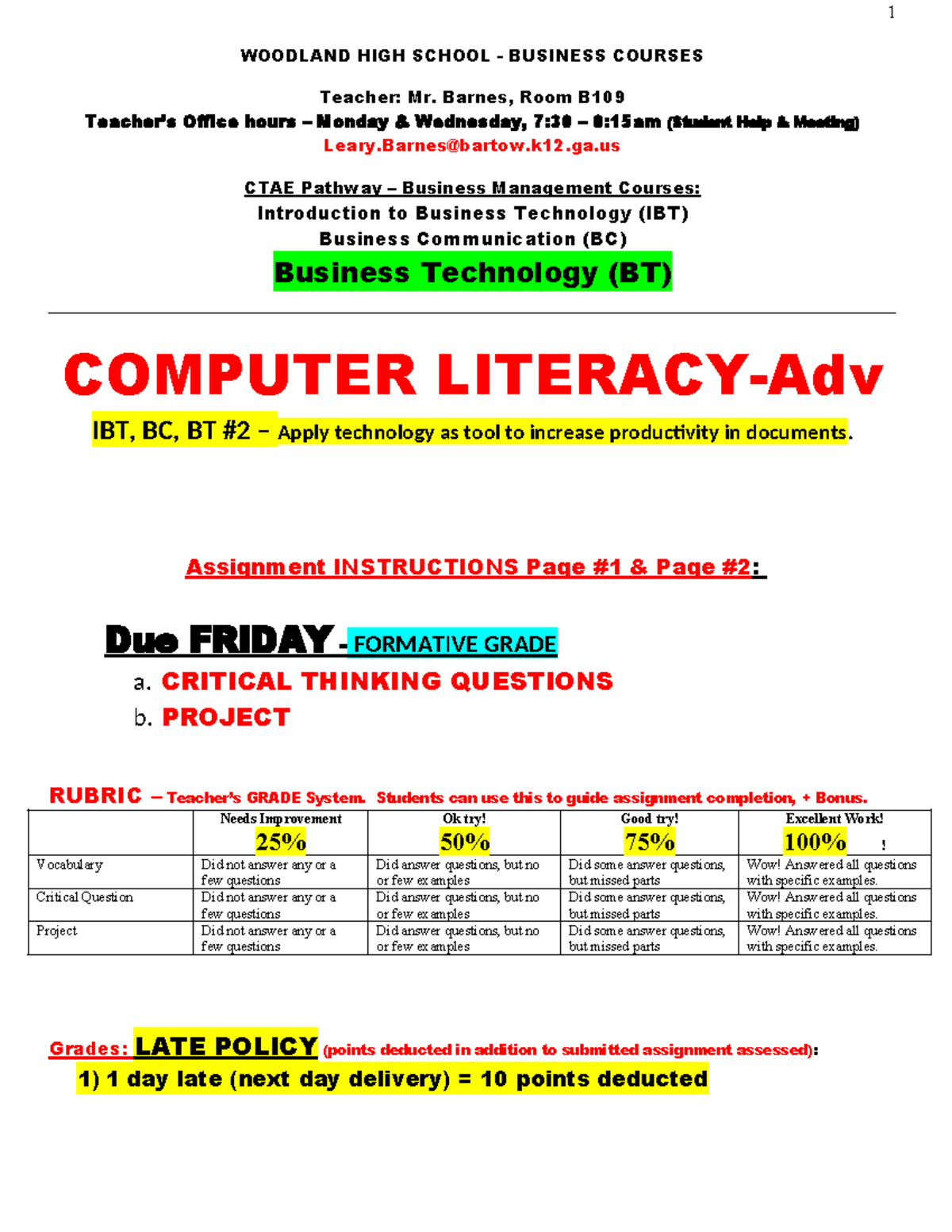Computer Literacy Advanced (HCLT102-1) Course Outline and Assessment ...