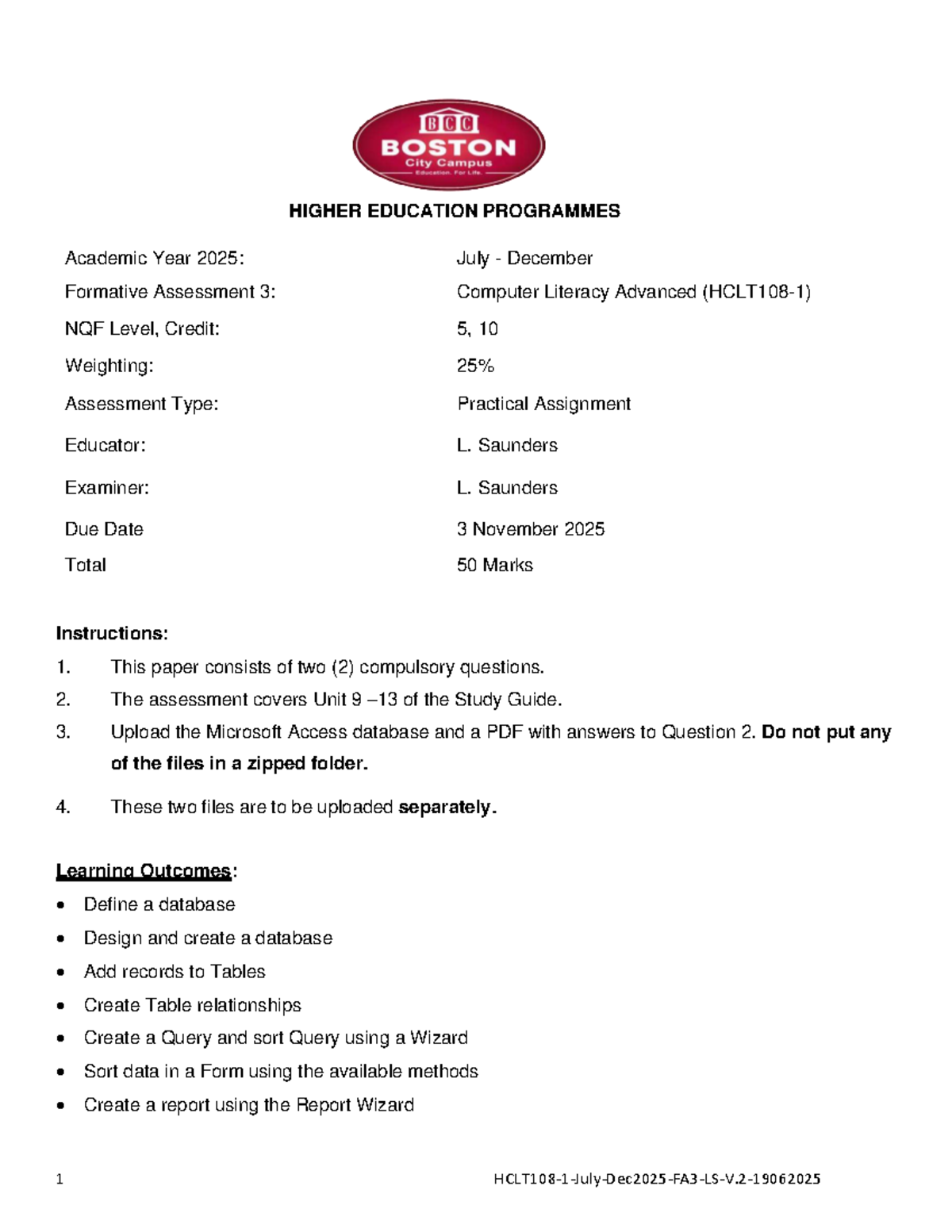 HCLT131 Formative Assessment 1: Computer Literacy Advanced (Jan-Jun ...