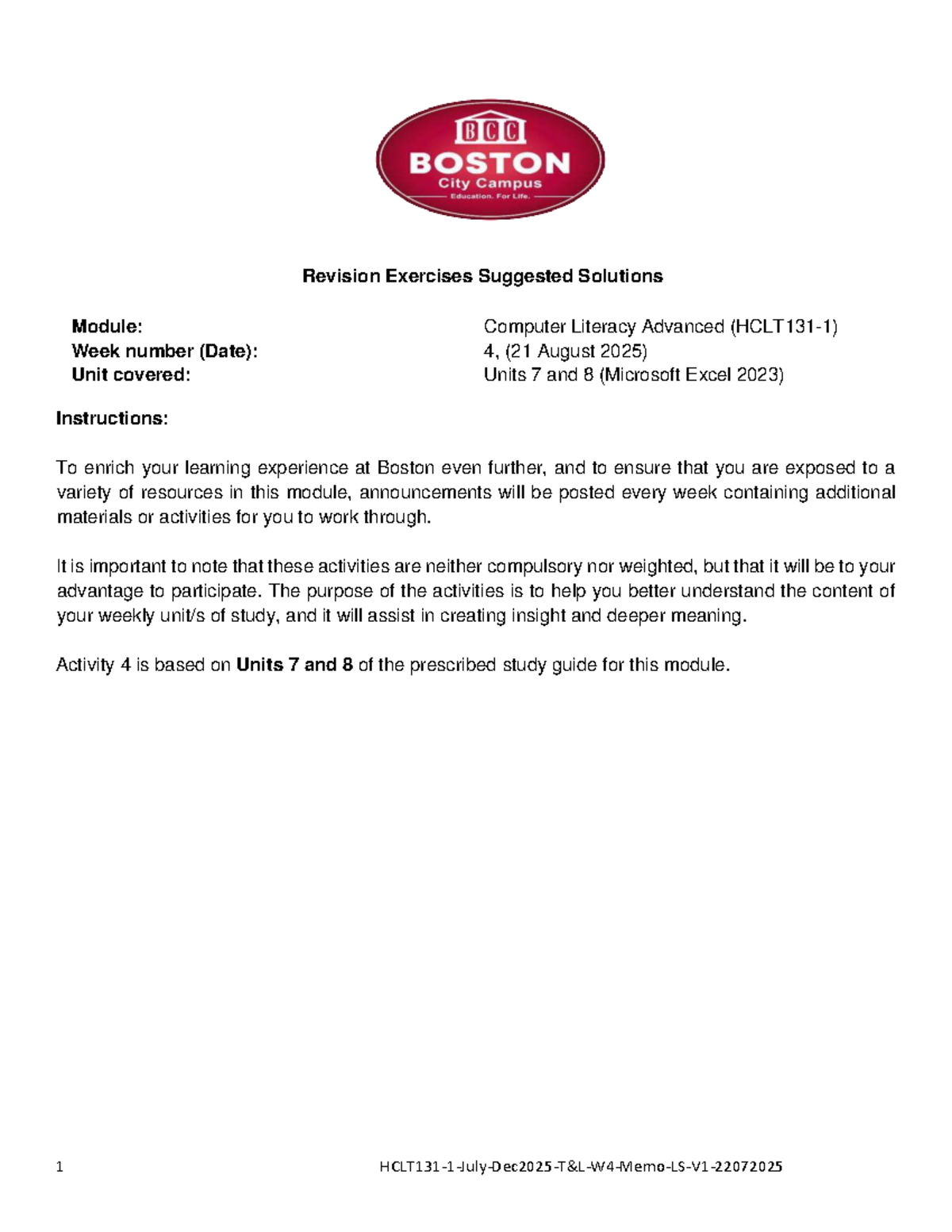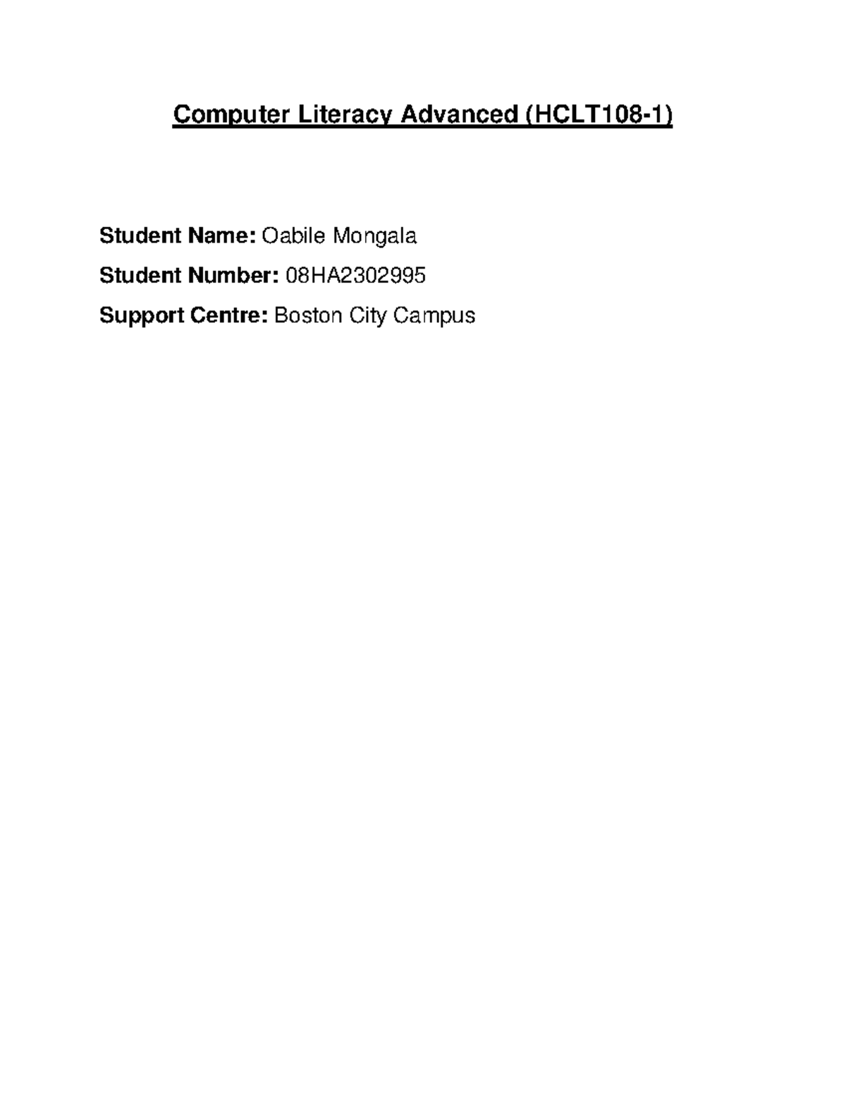 HCLT108-1 - Boston City Campus - Computer literacy advanced - Studocu