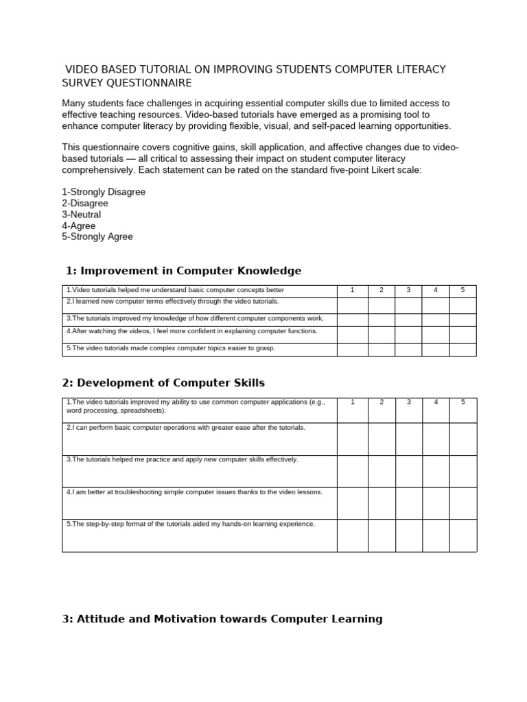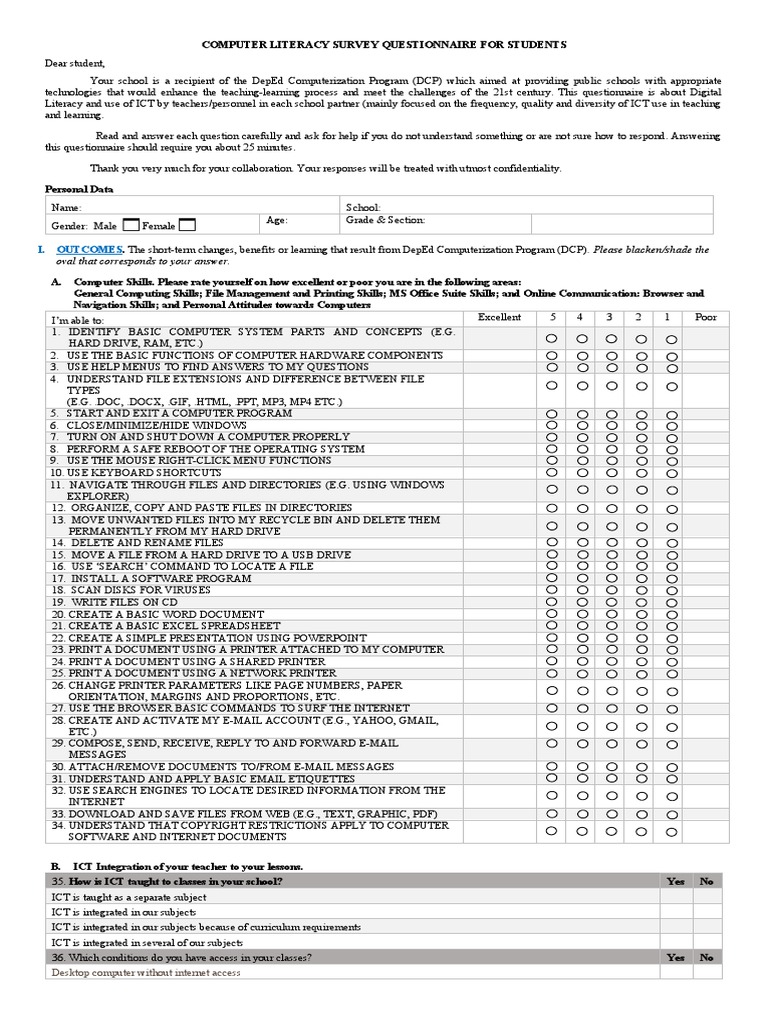 Computer Literacy Survey Questionnaire For Students | PDF | Educational ...