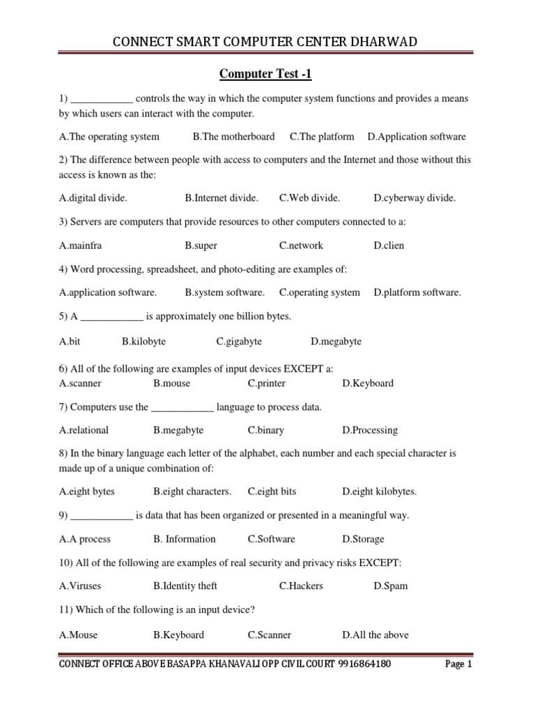Computer Basic Question Paper With Answer at Dominic Chumleigh blog