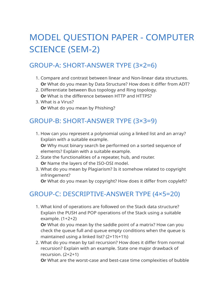 Model Question Paper - Computer Science (Sem-2) | PDF