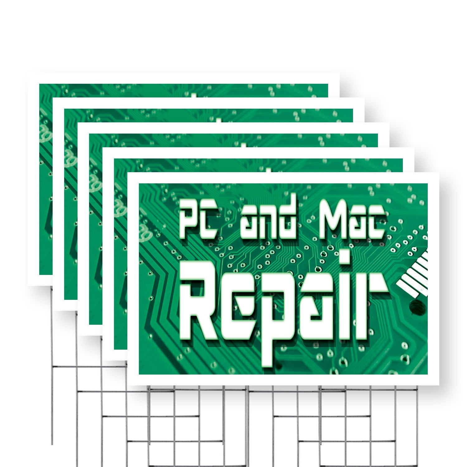 PC and Mac Repair Yard Sign 5 Pack of 24 Inch x 36 Inch Double Sided ...
